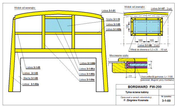 Szczególna uwaga została zwrócona na zachowane fragmenty połączeń jak tkwiące w szczątkach szkieletu gwoździki, wkręty, otwory po śrubach i podobne ślady określające technologię łączenia elementów kabiny. |